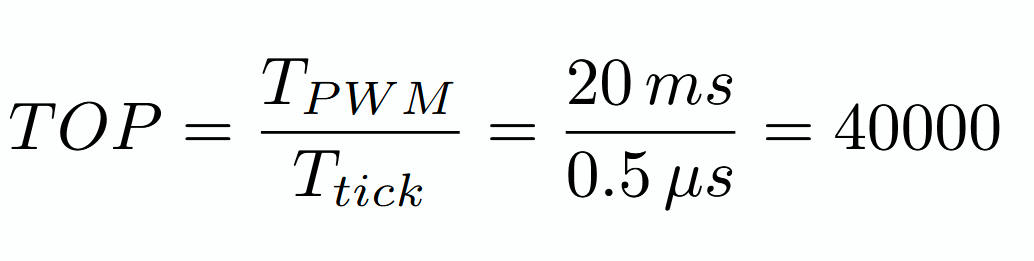 This code makes the PWM generate compare match at count 2400 this allows it to produce a 2400/40000 * 20 ms = ~1.2 ms pulse which is around 0 degrees.